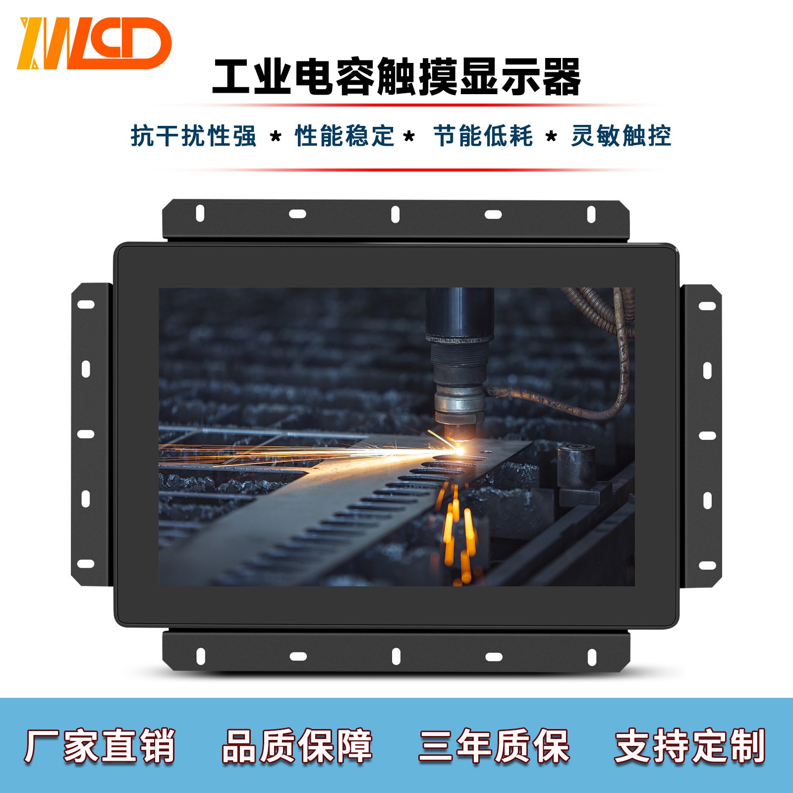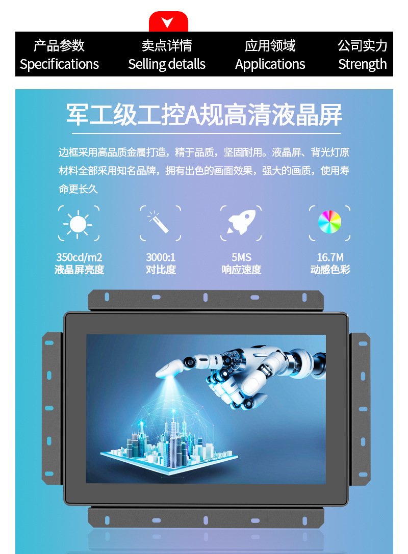 10.1寸高亮度显示器嵌入式安装高清工业电容触摸显示器
