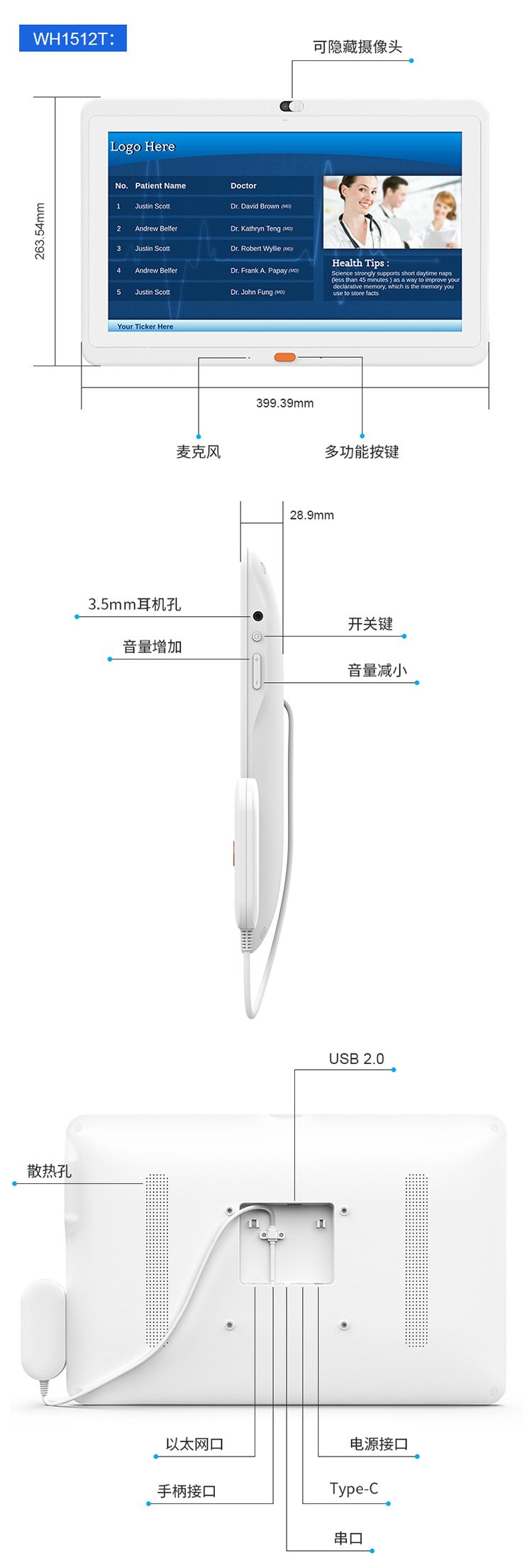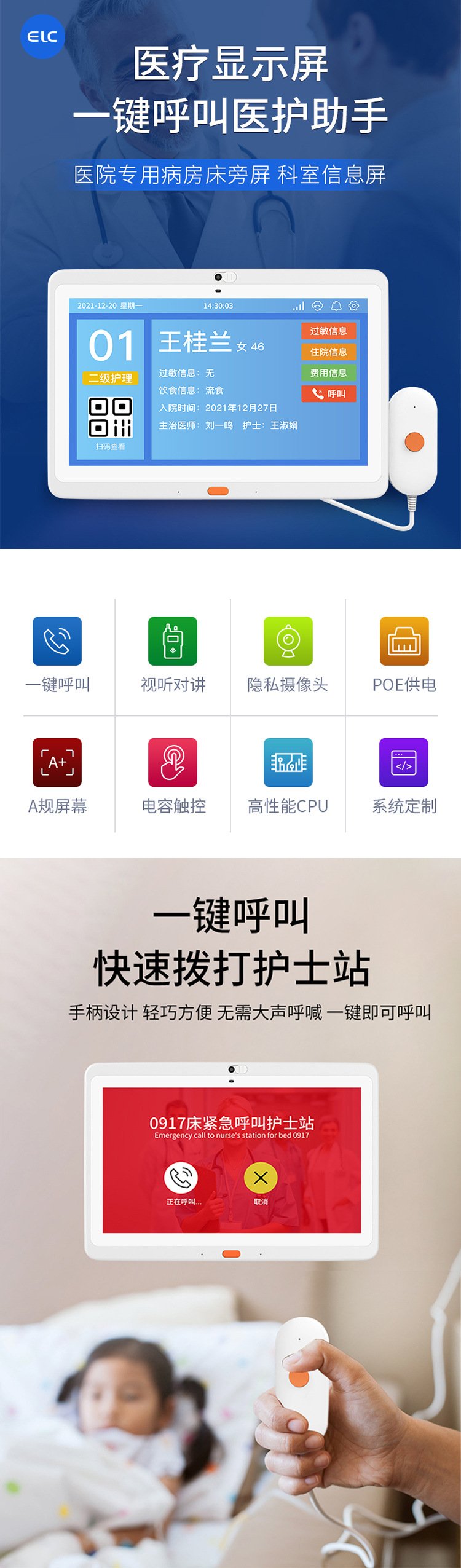 10.1/13.3寸/15.6寸安卓医疗触摸一体机病床陪护呼叫多媒体一体机