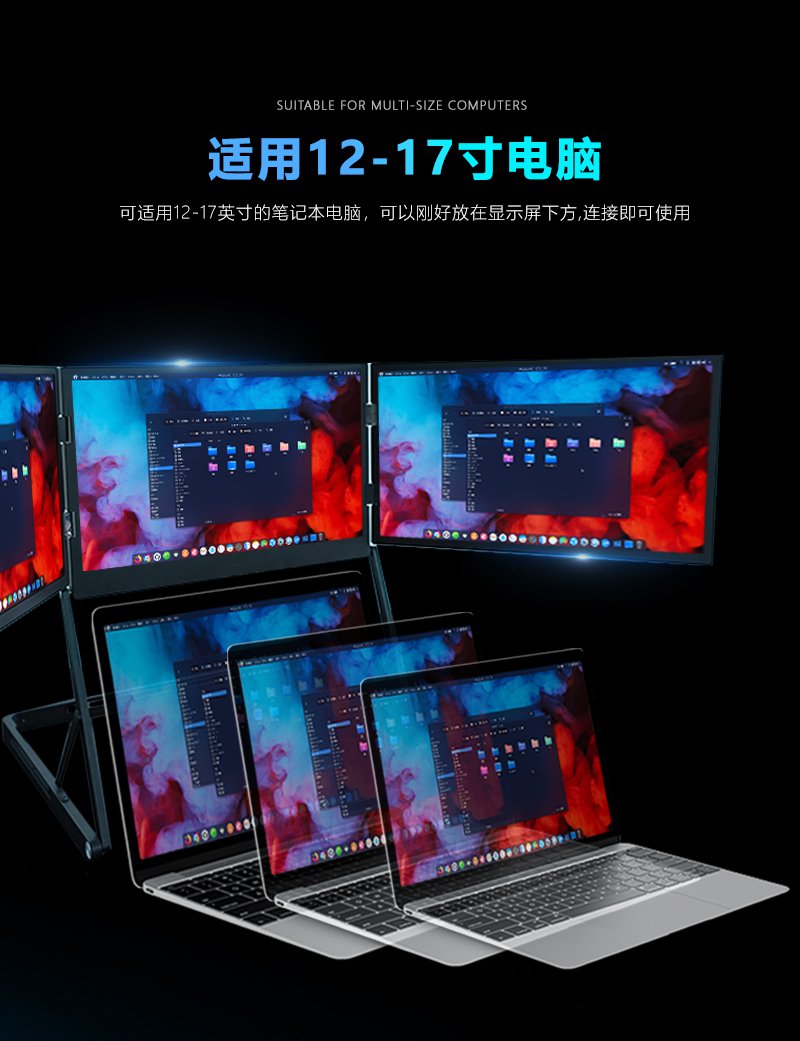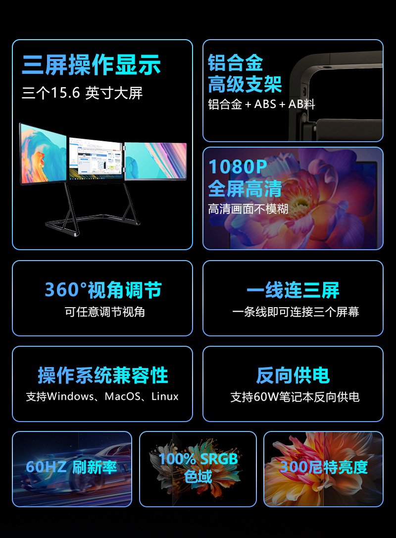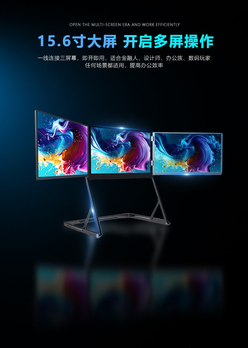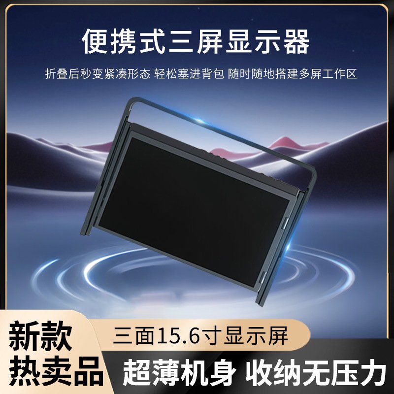 15.6寸折叠三屏显示器带音响股票交易实时液晶屏