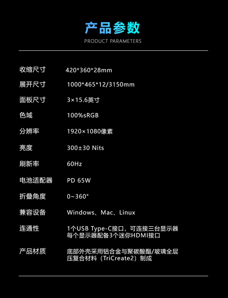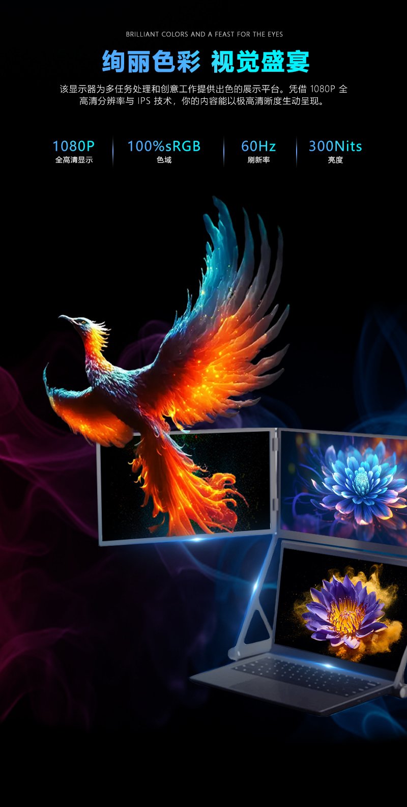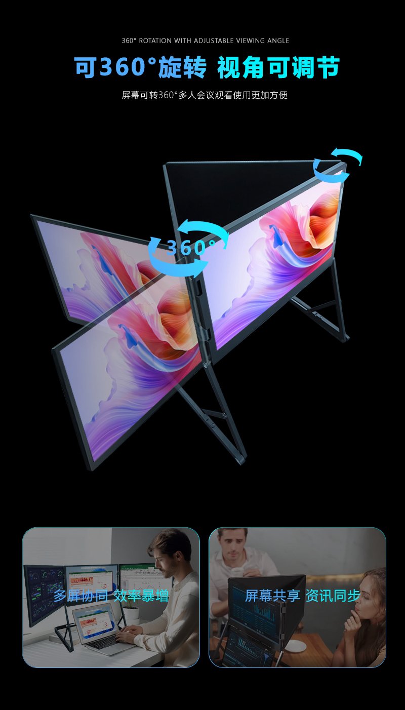15.6寸折叠三屏显示器带音响股票交易实时液晶屏