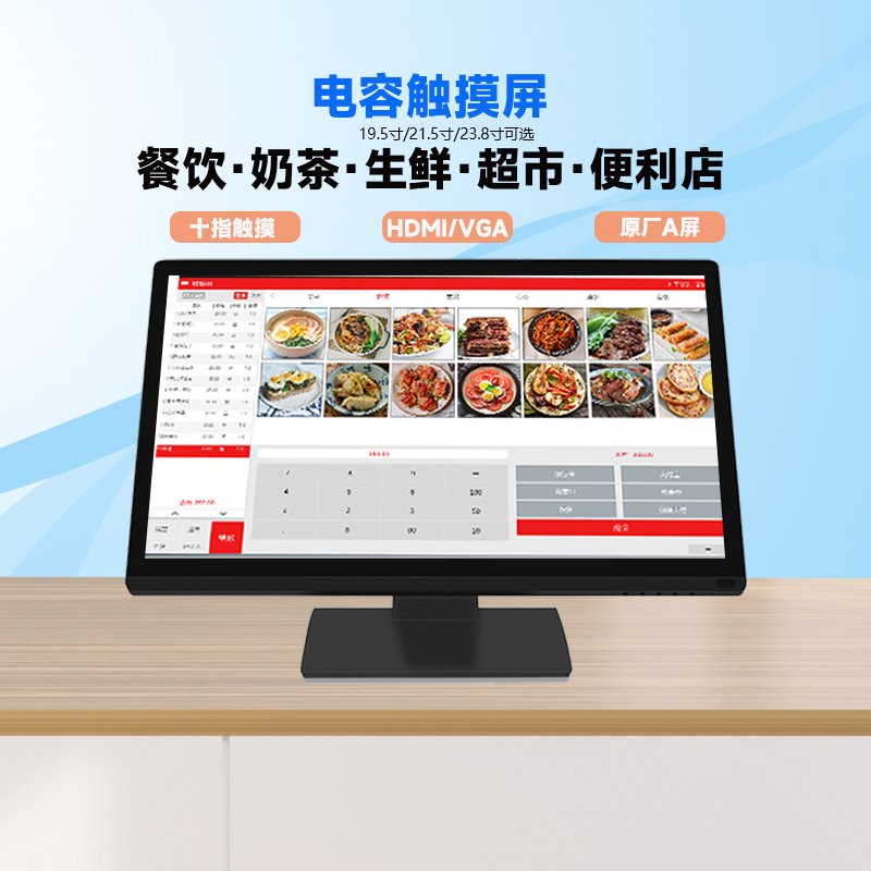 21.5寸纯平面餐厅点餐自助服务电容触摸显示器
