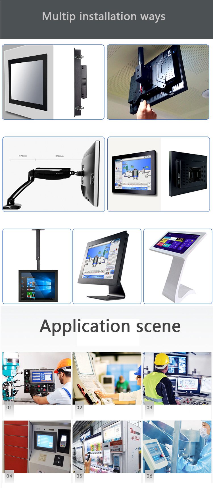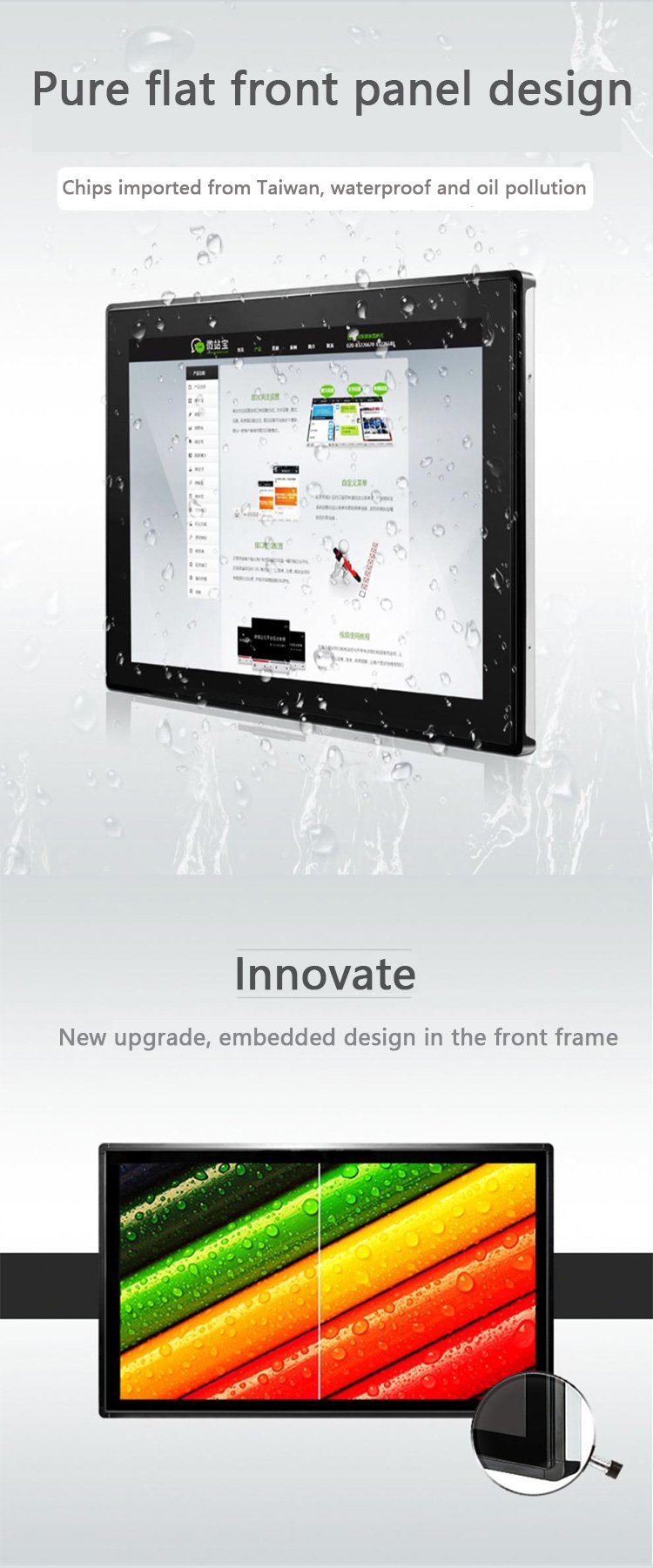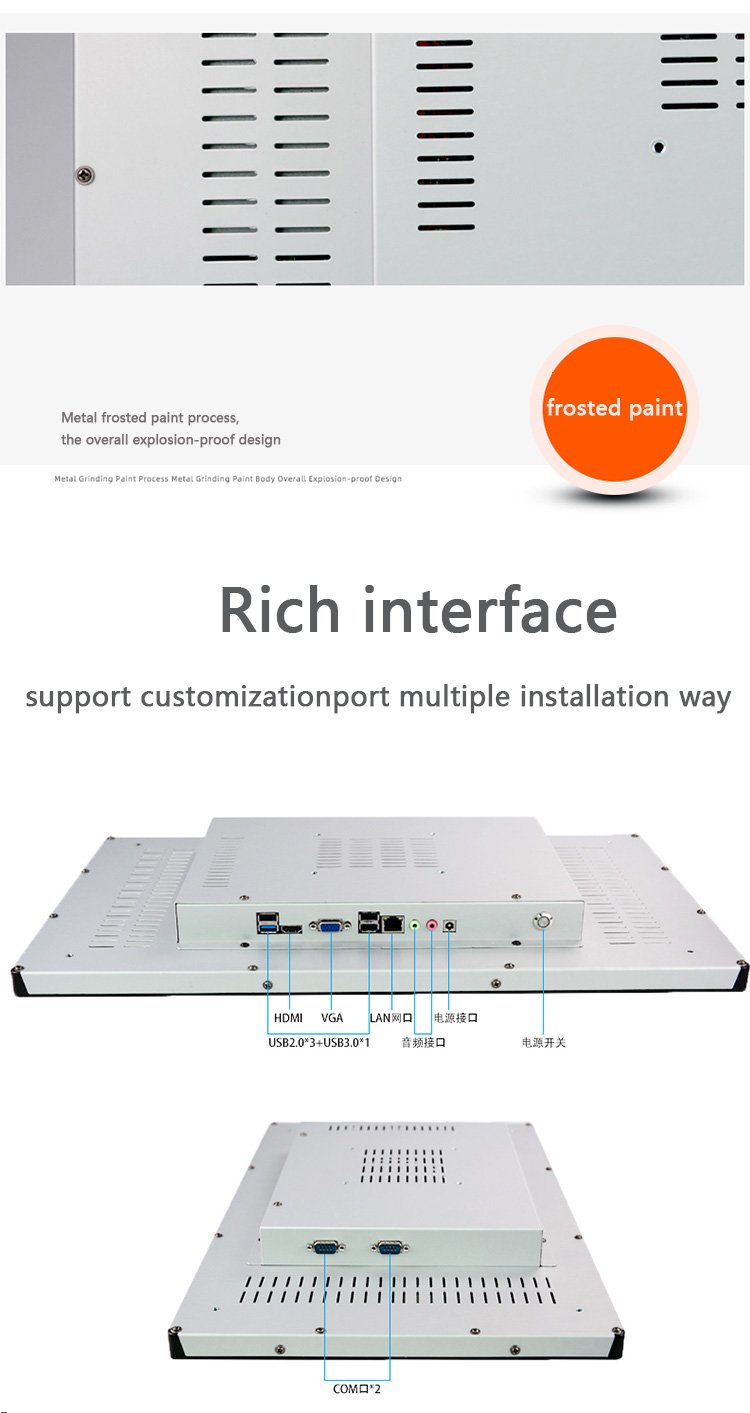 21.5寸IP65纯平面高亮度嵌入式安装电容触摸工业显示器