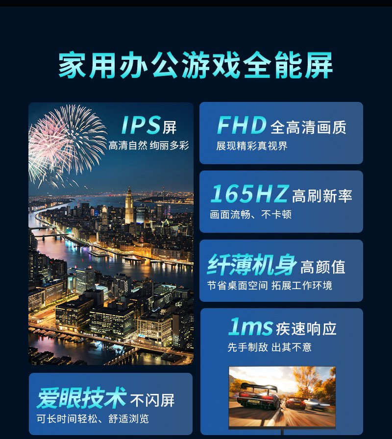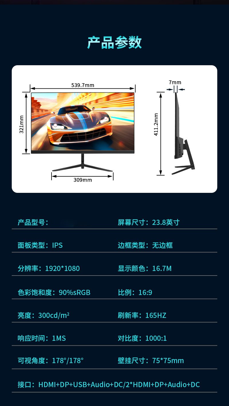 | Screen Size | 21.5寸1K100HZ, 21.5寸1K120HZ, 23.8寸1K100HZ, 23.8寸1K120HZ, 23.8寸1K165HZ, 23.8寸1K180-200HZ, 24.5inch 1K120HZ, 24.5inch 1K180-200HZ, 24.5inch 1K320HZ, 24.5inch1k100HZ, 24.5inch1K240HZ, 27寸1K100hz, 27寸1K144hz, 27寸1K180hz, 27寸1K240hz, 27寸1K380hz, 27寸2K100hz |