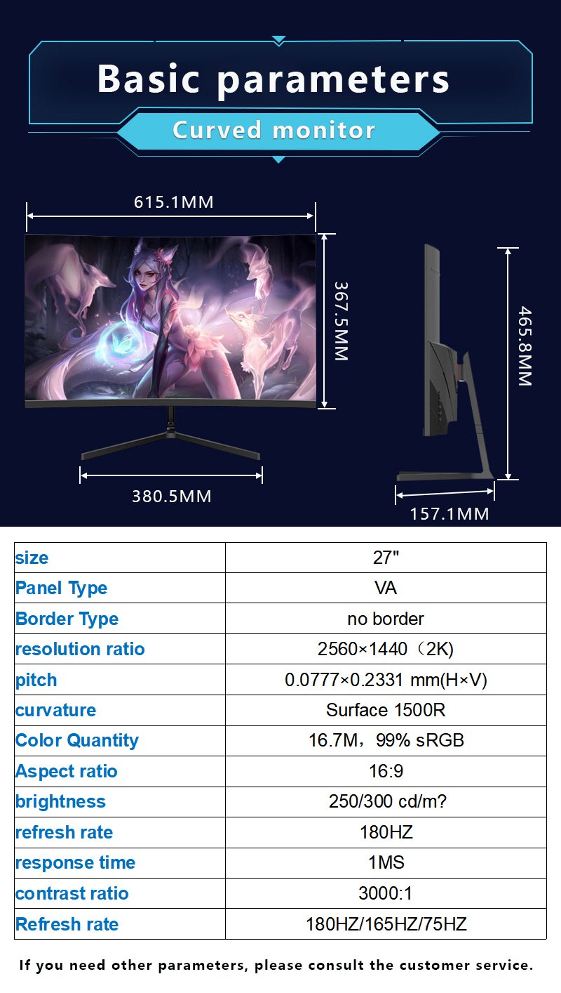 27寸跨境全新显示器2K180HZ曲面VA面板280HZ高清电竞曲面显示器