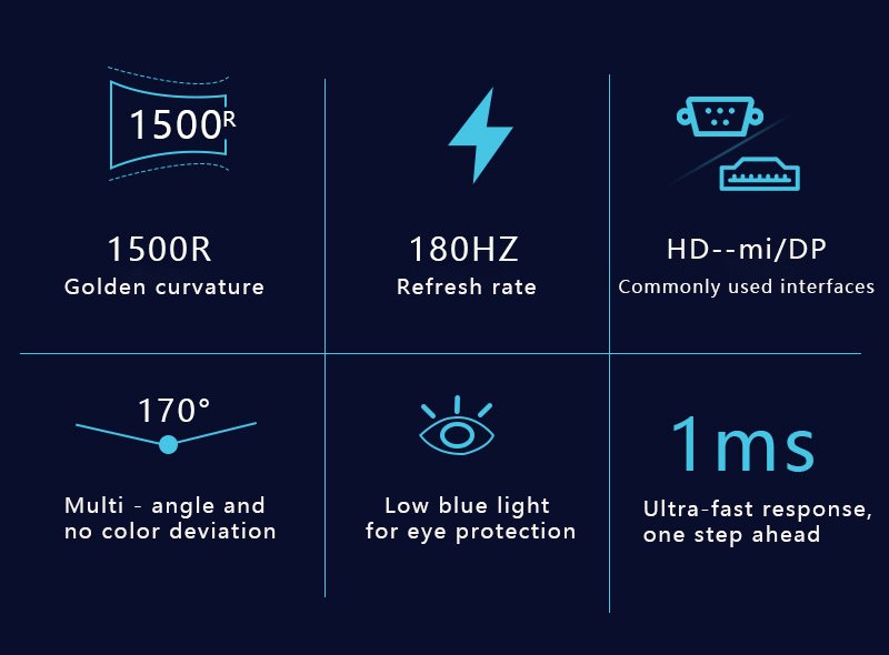 23.8寸1K100hz曲面显示器, 23.8寸1K120hz曲面显示器, 23.8寸1K180-200HZ曲面显示器, 27寸1K100-120HZ曲面显示器, 27寸1K180-200HZ曲面显示器, 27寸1K280hz曲面显示器, 27寸2K100HZ曲面显示器, 27寸2K180HZ曲面显示器