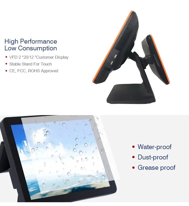 Cheap 15 17 inch Touch Screen Pos Cash Register Dual Screen Terminal All In One Pos System