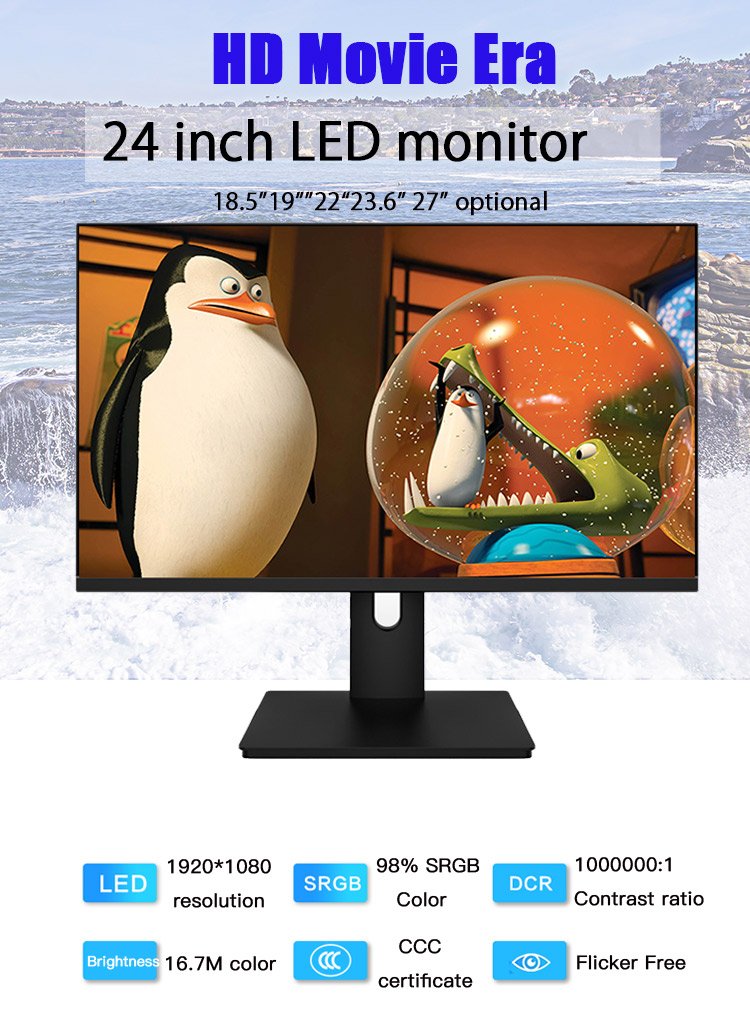 | Panel size | Flat frameless 24″ (16:9) LED monitor(VA/IPS) |