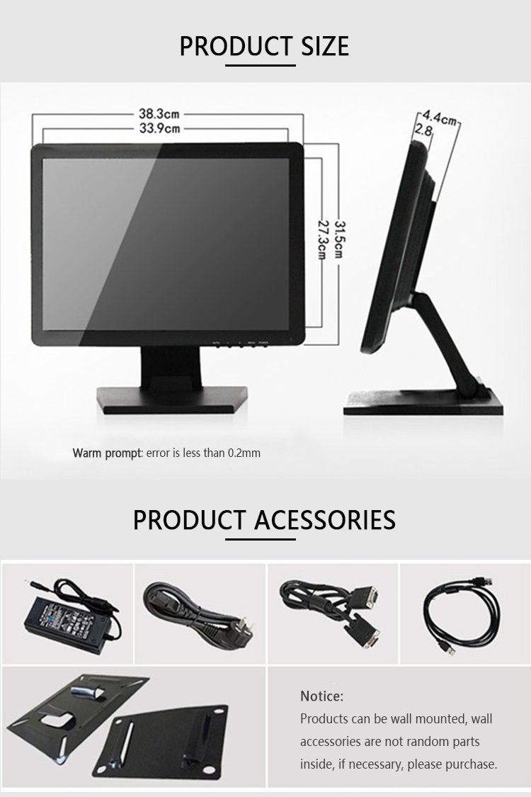 | Panel size | 17 inch TFT-LCD Industrial Grade Touch Screen Monitor | Frequency | HSF:30-80KHZ VSF:56-75HZ |