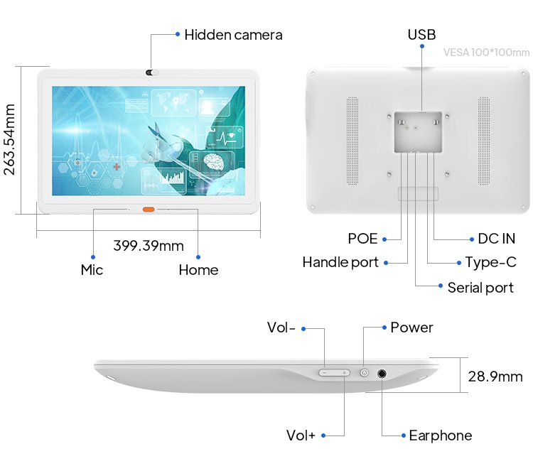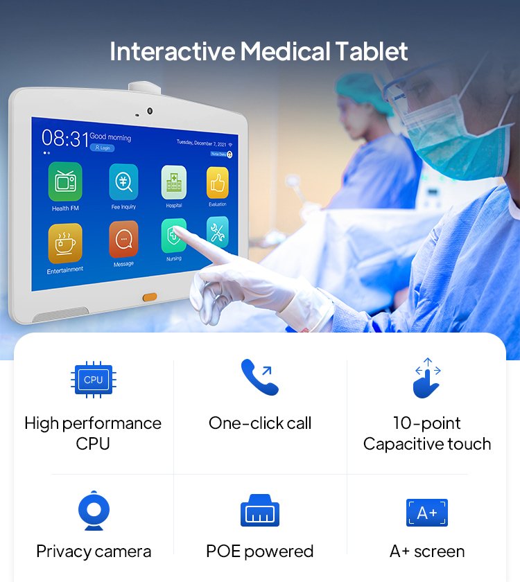 Wall mount 10.1 13.3 15.6 inch touch screen Medical hospital patient care Call Handle Service multi interface android poe tablet